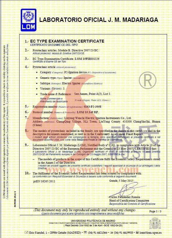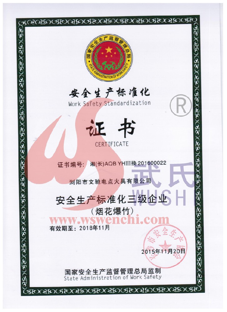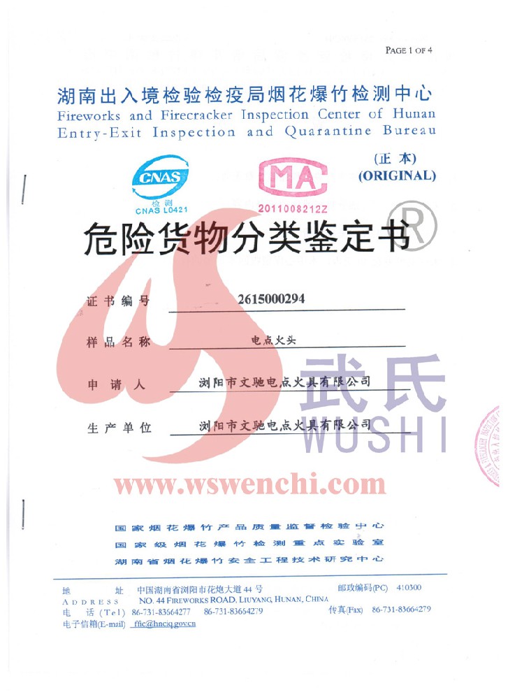 瀏陽市文馳電點火具有限公司(原培文電子點火器材廠),創(chuàng)建于1998年,是一家專業從事研制銷售電子點火產品的民營科技企業,是我國第1枚煙花用電點火頭生產者,是《煙花爆竹電點火頭國標》牽頭起草單位。公司位于中國“煙花之鄉”湖南省瀏陽市,地理位置優(yōu)越,交通便利。 我公司研制的對象是用電能引燃火藥、做機械功等預定功能的一次性使用的元件或裝置,包括電點火頭(英文名ElectricMatch or Electric Igniter,中文俗稱“電火柴”或“電發(fā)火頭”)、電點火管和延期電點火管;我們估且在以后的產品技術欄中將我們研究的產品統稱為電點火具,將電點火器看成是用于提供和控制供給電點火元件點火的電能器材;我們研究的電點火橋路有橋絲式、無橋絲···